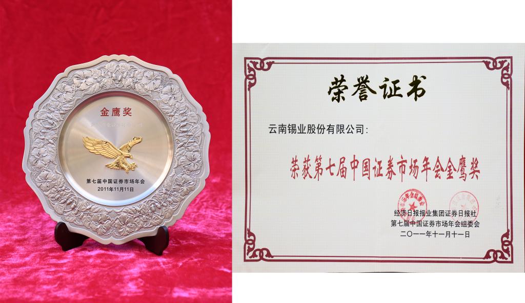 榮獲“第七屆中國證券市場年會金鷹獎”