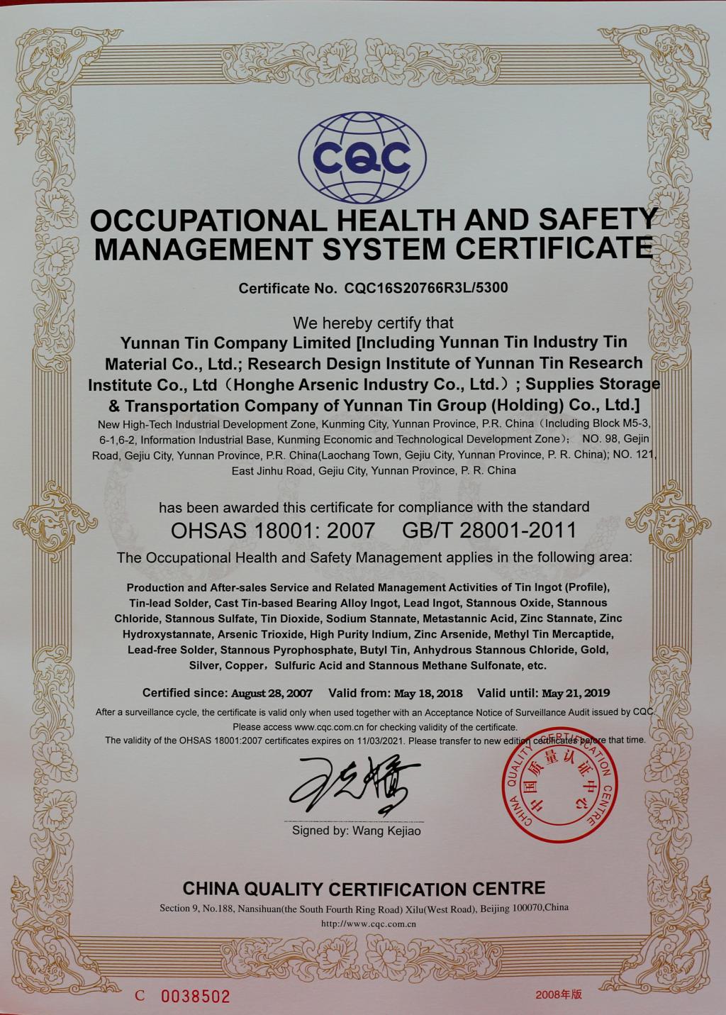 CQC職業(yè)健康安全管理體系認(rèn)證證書 (英文)