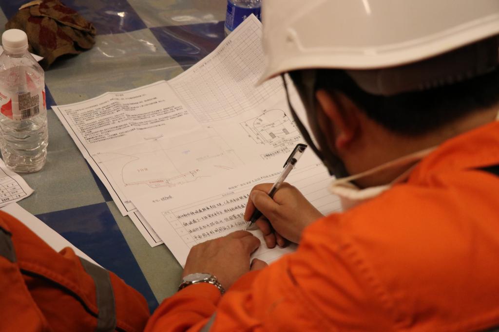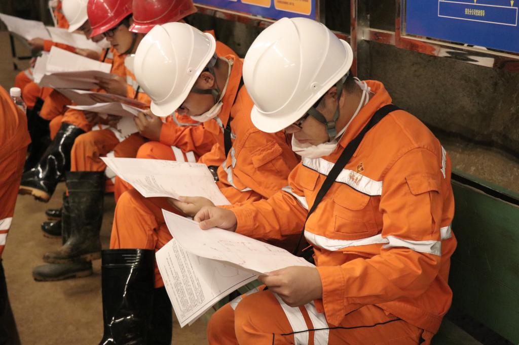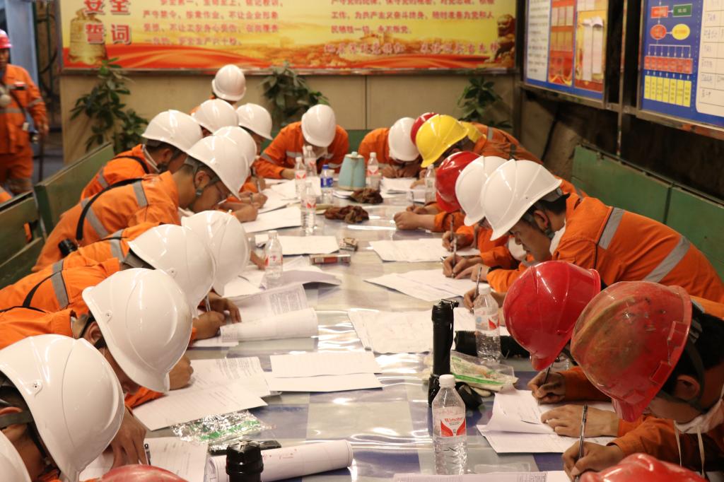 參賽人員經(jīng)過安全員入坑安全培訓后前往本次考試地點塘子凹坑的主力采場3-11-5E,由于高手云集,最后一輪比賽標準更高,要求更嚴。比賽現(xiàn)場,選手們信心滿滿,躍躍欲試,氣氛嚴肅卻又不失親切。拿到考題后認真勾畫,緊抓重點。在迎頭上,選手們沉著迎戰(zhàn),從容不迫,認真排查現(xiàn)場與施工單上“異樣”,反復查看,爭取不漏任何細節(jié)。