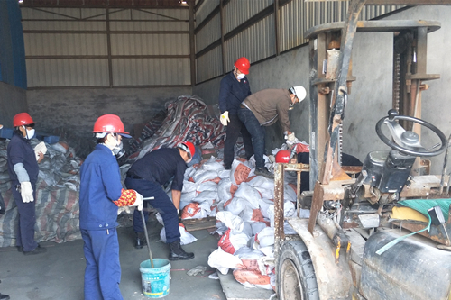 為確保銅渣順利發(fā)運,云湘黨支部急生產(chǎn)之所急,迅速組織由黨員和業(yè)務(wù)骨干組成8人突擊隊,于11月21日、22日投入到緊張裝卸任務(wù)中。在場地狹窄、大型設(shè)備施展不開等問題下,只能依托人工背運到叉車,再通過叉車轉(zhuǎn)運到卡車,銅渣一袋凈重30公斤,需要來回翻騰兩次,沒開工多久,突擊隊員已汗流浹背,氣喘吁吁。盡管如此,突擊隊員一直緊咬牙關(guān),不顧灰塵,不顧呼出的熱氣模糊了眼鏡,不顧大滴的汗水從安全帽流出,一鼓作氣把60多噸銅渣及時補裝到位,保證銅渣銷售外運工作正常開展。