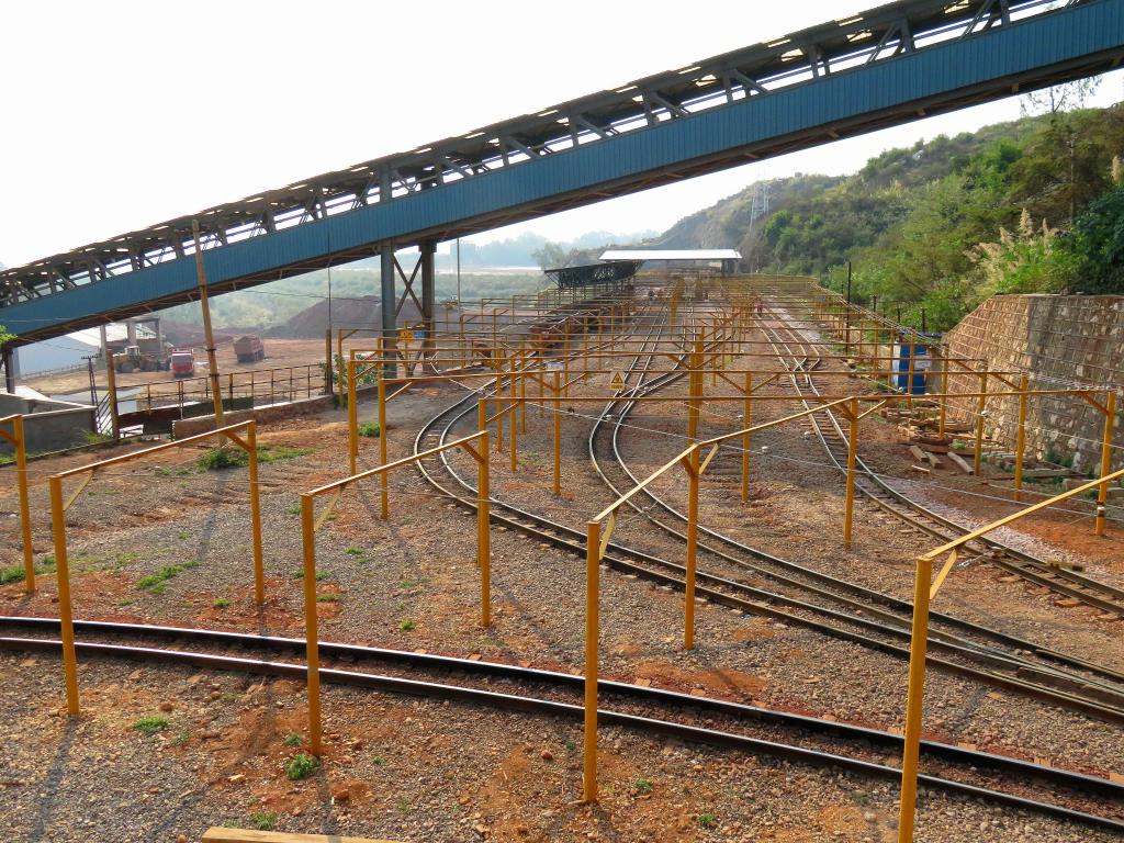 1360快速運輸線中的丙坑運輸線調(diào)車場卸礦位于站官家山段終點站,是大屯錫礦硫化錫銅礦運輸技改工程中的一個主要系統(tǒng),也是井下礦石運輸?shù)慕K點站。每天在此線路往返的運礦列車達60多趟,擔負著每年100多萬噸氧硫礦石的卸礦和3萬多次礦車周轉(zhuǎn)的任務。隨著技改主體工程完工,在使用了近3個月后,為進一步優(yōu)化完善調(diào)車場運行條件,動運車間組織釘?shù)狸牼闪α?,?天時間對調(diào)車場卸礦站鐵道運輸線路進行了全面升級改造。