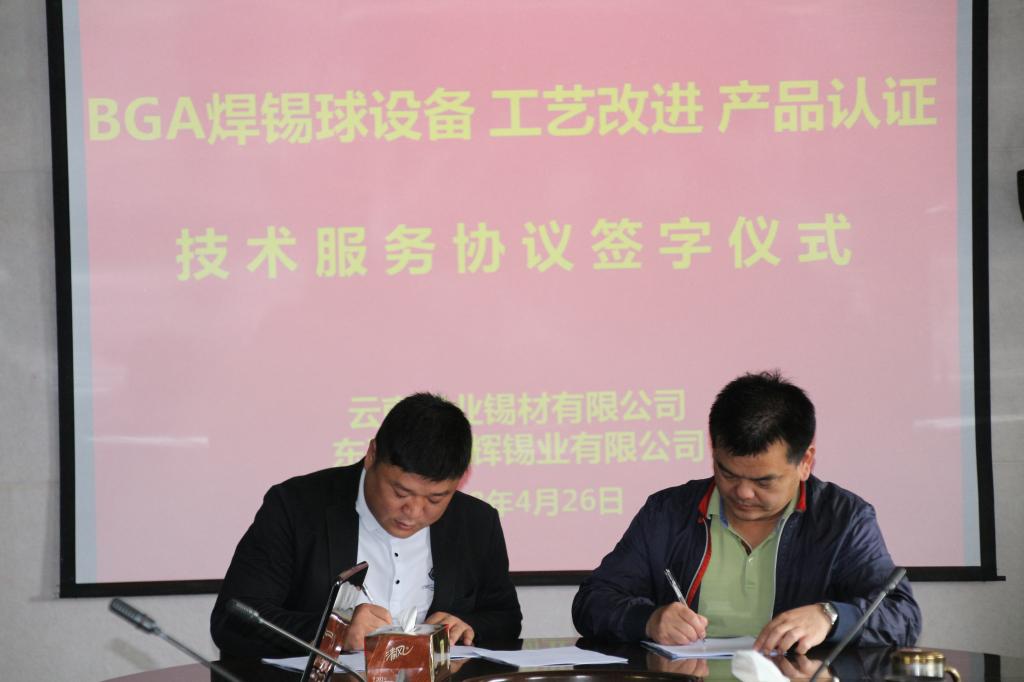 近日,為進一步提高錫材公司BGA焊錫球生產(chǎn)技術(shù)和產(chǎn)品質(zhì)量水平,錫材公司與東莞市聯(lián)輝錫業(yè)有限公司簽署技術(shù)合作協(xié)議。