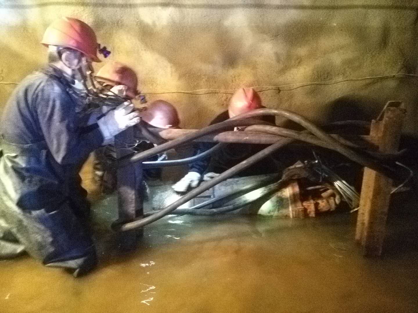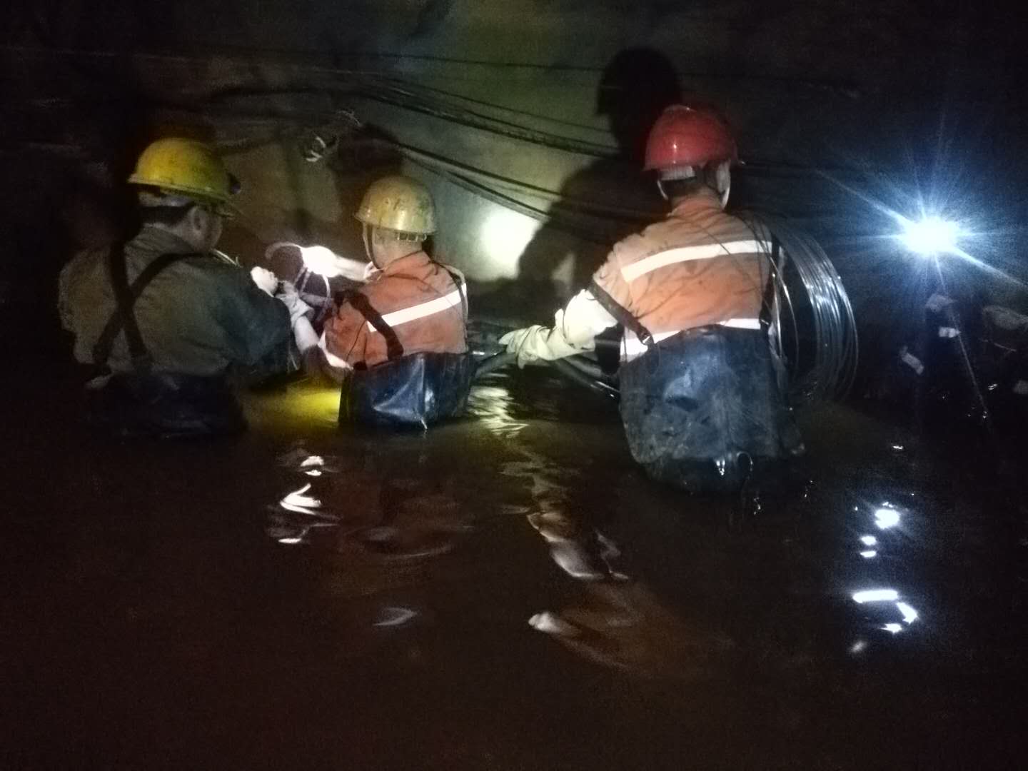 1700米中段,2公里多的上班路變成了一片汪洋,巷道、生產(chǎn)設(shè)備被洪水淹沒。由于水流湍急,水位持續(xù)上漲,救援搶險(xiǎn)工作進(jìn)展緩慢。危難關(guān)頭,干部職工脫下身上的衣物,就淌進(jìn)了齊腰深的洪流中,一路摸索前行,設(shè)法向生產(chǎn)設(shè)備靠近,最終將被淹沒的設(shè)備搶救出來。