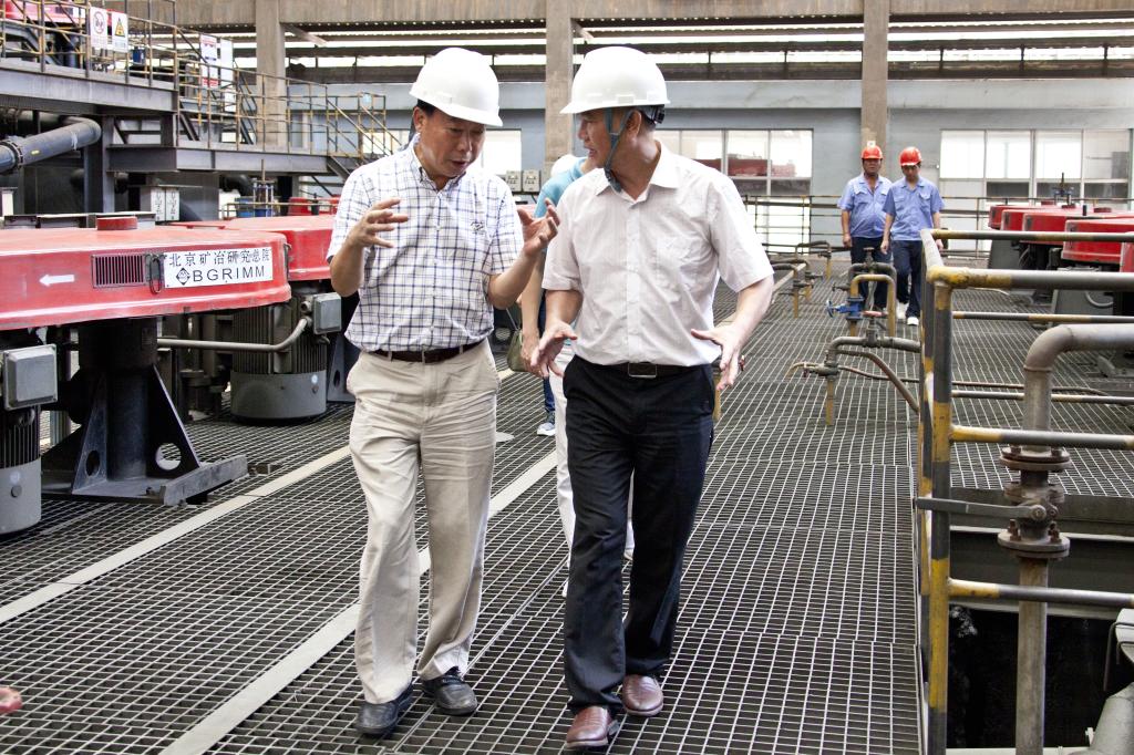 在選礦作業(yè)車間,客人們詳細了解了大屯錫礦選礦的發(fā)展歷程、生產規(guī)模、設備流程等情況,仔細觀察了搖床的工作原理和詢問了礦石品位等,對大屯錫礦信息化管理、精細的選礦技術及大規(guī)模的生產流程給予了高度評價,并就安全生產等工作進行交流,提出了建設性的意見和建議。
