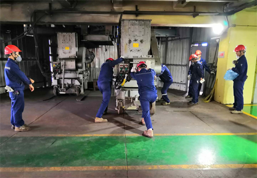 而焙燒工序與行車班相反,全是一群男子漢,少了女同胞的認(rèn)真細(xì)致,但他們粗中有細(xì)的,更換拋料機(jī)便成了技能比賽關(guān)鍵設(shè)備。因?yàn)閽伭蠙C(jī)是沸騰焙燒工序更換比較頻繁的一個(gè)設(shè)備,需要力量也需要技術(shù),如何快速、準(zhǔn)確地更換拋料機(jī),確保沸騰爐連續(xù)進(jìn)料。更換拋料機(jī)技能比武是三人一組在模擬正在使用的拋料機(jī)故障下進(jìn)行,需要盡快更換一臺(tái)備用的,先把正在使用的從沸騰爐拋料口拉出來,再把備用的推進(jìn)去,接到拋料口以及爐前倉(cāng)的下料口,確保物料可以準(zhǔn)確拋入爐內(nèi)。他們沉著應(yīng)戰(zhàn),展現(xiàn)出熟練的操作技能、拼搏的進(jìn)取精神、通力協(xié)作的團(tuán)隊(duì)意識(shí),充分展示了一線操作人員良好的職業(yè)素養(yǎng)、精神風(fēng)貌和業(yè)務(wù)素質(zhì)。最后,李紹林、張后奎、孟順林以2分55秒的最快速度獲勝。