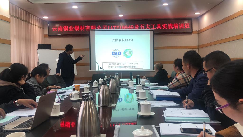 為使錫材公司體系管理相關(guān)人員理解和掌握IATF16949:2016標(biāo)準(zhǔn)內(nèi)容及其實(shí)戰(zhàn)應(yīng)用,掌握和應(yīng)用五大工具的內(nèi)容,公司攜手中國檢驗(yàn)認(rèn)證集團(tuán)云南有限公司/中國質(zhì)量認(rèn)證中心云南評(píng)審中心舉辦本次共4天的封閉式培訓(xùn)班,邀請(qǐng)中國質(zhì)量認(rèn)證中心資深專家、GB/T19001-2016標(biāo)準(zhǔn)的起草者李明全程授課。培訓(xùn)班從工具的角度進(jìn)行講解和學(xué)習(xí),從IATF16949標(biāo)準(zhǔn)條款講起,逐步鋪展到SPC統(tǒng)計(jì)過程控制、MSA測量系統(tǒng)分析、FMEA潛在失效模式與后果分析、PPAP生產(chǎn)件批準(zhǔn)程序、APQP產(chǎn)品質(zhì)量策劃這五大核心工具的運(yùn)用和實(shí)操。