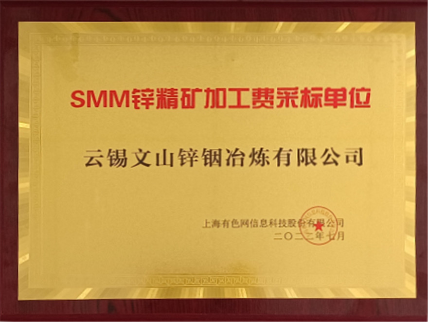 近日,文山鋅銦冶煉有限公司被上海有色網(wǎng)(SMM)評(píng)為“SMM鋅精礦加工費(fèi)采標(biāo)單位”。