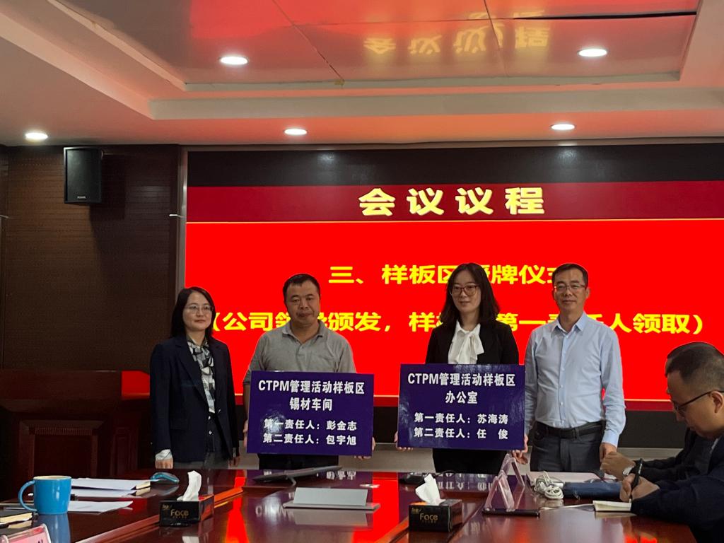 會議選定了錫材車間和辦公室為CTPM管理活動樣板區(qū),并對樣板區(qū)負(fù)責(zé)人進(jìn)行授牌。華謀項目組從項目目標(biāo),項目方法、工作計劃、團(tuán)隊建設(shè)和溝通機(jī)制等方面進(jìn)行詳細(xì)安排。