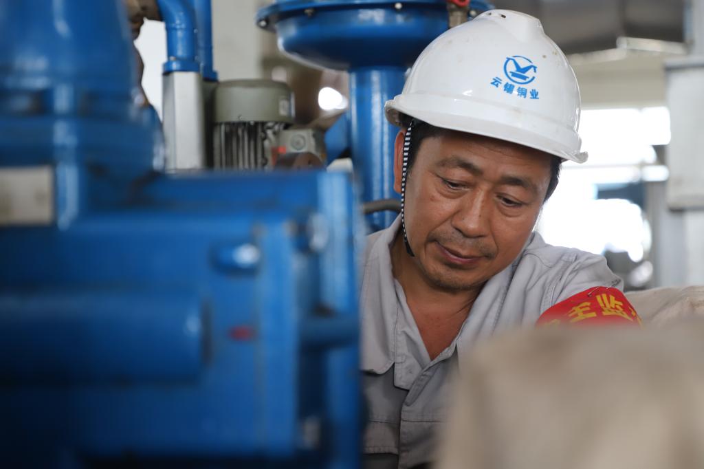 李駿師傅在冶金爐窯修理的崗位上一干就是三十幾年?;貞涀约旱那啻簳r(shí)光,李駿說,當(dāng)時(shí)同齡的黨員非常少,黨組織生活大都在晚上七點(diǎn)到九點(diǎn)這個(gè)階段,用業(yè)余時(shí)間開展黨內(nèi)學(xué)習(xí)。身邊的黨員同志,包括父親在內(nèi),個(gè)個(gè)能吃苦,干活任勞任怨,那種精神一直感染著他。對他來說,入黨的意義,既是年輕人的積極進(jìn)取,也是父輩榜樣力量的指引,更是艱苦奮斗的精神傳承。李駿是銅業(yè)分公司成立后的第一批員工,承擔(dān)著熔煉四座爐子的修理和八臺(tái)風(fēng)機(jī)的維護(hù)。從英格索蘭風(fēng)機(jī)到GD風(fēng)機(jī),他把每臺(tái)風(fēng)機(jī)的習(xí)性摸得透透的?!皺z修一次,好好維護(hù),能保證爐子和全場各個(gè)用風(fēng)的系統(tǒng)順順利利開一年。”把風(fēng)機(jī)維護(hù)好并不是件容易事,李駿師傅輕松的話語里,透出的是責(zé)任和擔(dān)當(dāng)。