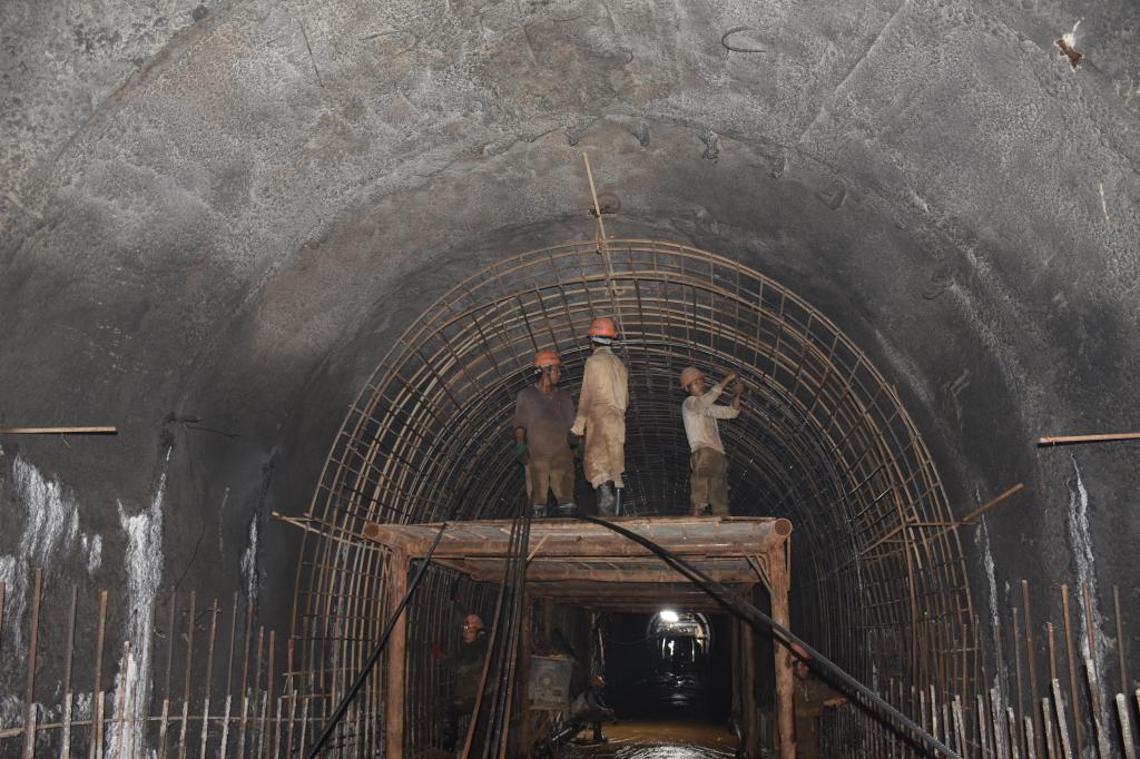 在排洪隧洞二次襯砌需要一次性成型澆筑時,大家站在水里接力把鋼架釘進去,等澆筑完每個人累得碗都抬不動,脫水鞋時因為腳掌潰爛硬生生扯下一塊皮來??粗@群平均年齡不足27歲的年輕人呲牙咧嘴的表情,項目經(jīng)理趙云哽咽宣布“全體人員休假一天?!?/span>