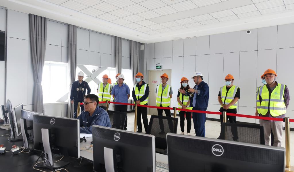 驗收組實地查勘熔煉車間頂吹爐、精煉車間主廠房、煉渣車間康索夫制酸系統(tǒng)、動力車間污酸污水處理系統(tǒng)、中轉(zhuǎn)渣庫、原料倉等生產(chǎn)線及環(huán)保設(shè)施。