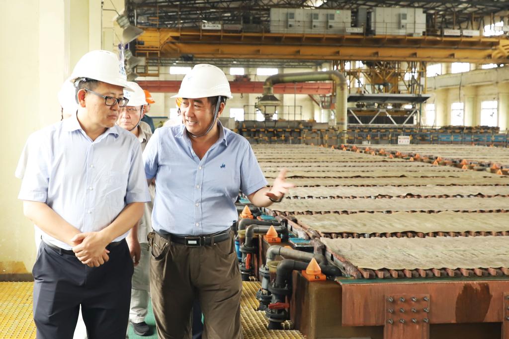 7月23日,省商務(wù)廳副廳長(zhǎng)王曉華率隊(duì)調(diào)研銅業(yè)分公司??毓晒军h委副書記、副董事長(zhǎng)、總經(jīng)理程睿涵熱情接待來(lái)賓。