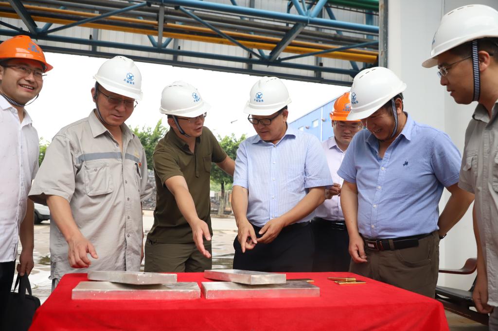 錫業(yè)股份副總經(jīng)理吳建勛,銅業(yè)分公司黨委書記郭建平,黨委副書記、經(jīng)理陳鋼,州商務(wù)局局長(zhǎng)和濤參加調(diào)研。