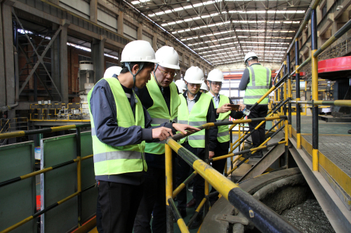 在選礦車間,大屯錫礦副經(jīng)理莫峰熱情接待了到訪的來賓。經(jīng)過入廠安全培訓(xùn)之后,來賓們進(jìn)入了秩序井然的生產(chǎn)車間,選礦車間的陪同人員介紹了車間的產(chǎn)能、工藝流程、科技創(chuàng)新等方面情況,在聽取介紹和實(shí)地參觀后來賓們對于規(guī)范整潔的作業(yè)環(huán)境給予了充分肯定,而大型化、自動(dòng)化設(shè)備的廣泛運(yùn)用也給他們留下了深刻的印象。