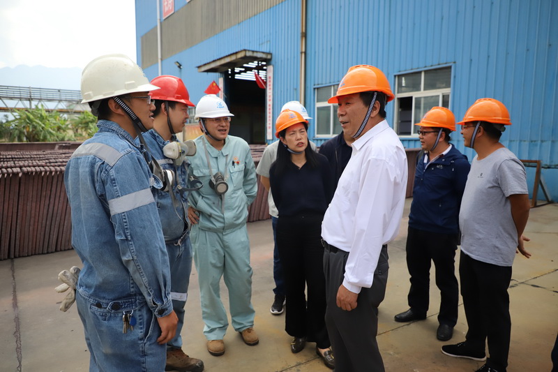 在銅業(yè)分公司,張濤首先查看了12.5萬噸/年陰極銅升級改造項目施工現(xiàn)場,詢問了項目建設(shè)進度等方面的情況。到電解車間陰極剝片機組控制室、電解精煉槽面兩個重點工作崗位,對值班值守情況進行了檢查,要求大家一定要安排好節(jié)日期間的值班值守,在崗期間要履職盡責(zé),加強巡查,抓好安全生產(chǎn),確保節(jié)日期間安全風(fēng)險管控和各項應(yīng)急準備到位。嚴格把控銅電解精煉各項生產(chǎn)要素,確保節(jié)日期間銅業(yè)分公司陰極銅產(chǎn)品產(chǎn)量達標、質(zhì)量合格。隨后,在熔煉車間主控室,張濤與在崗員工親切握手,向他們致以節(jié)日的問候。