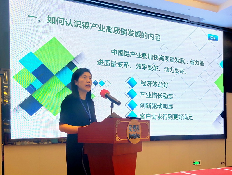 楊奕敏希望錫行業(yè)上下游各企業(yè)持續(xù)深化著眼長遠、開放合作、互利共贏的理念,并在錫業(yè)分會持續(xù)引導和推動下,加強行業(yè)自律,合力穩(wěn)定市場,搶抓發(fā)展機遇,在實現(xiàn)自我可持續(xù)健康發(fā)展的同時,為中國錫行業(yè)的高質量發(fā)展添磚加瓦、錦上添花。