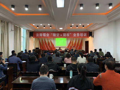錫業(yè)股份副總經(jīng)理張揚在致辭中指出,此次“期貨+期權(quán)”培訓(xùn),目的是強化領(lǐng)導(dǎo)干部對期貨期權(quán)等衍生工具的認識,在實務(wù)中更好運用衍生工具管理市場風(fēng)險,優(yōu)化庫存管理,提升企業(yè)盈利水平,持續(xù)鞏固和提高企業(yè)盈利能力,確保圓滿完成2019年生產(chǎn)經(jīng)營和改革發(fā)展各項工作任務(wù)。并要求參訓(xùn)人員珍惜機會,專心聽講,勤于思考,學(xué)思結(jié)合,學(xué)以致用。