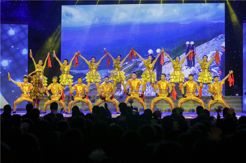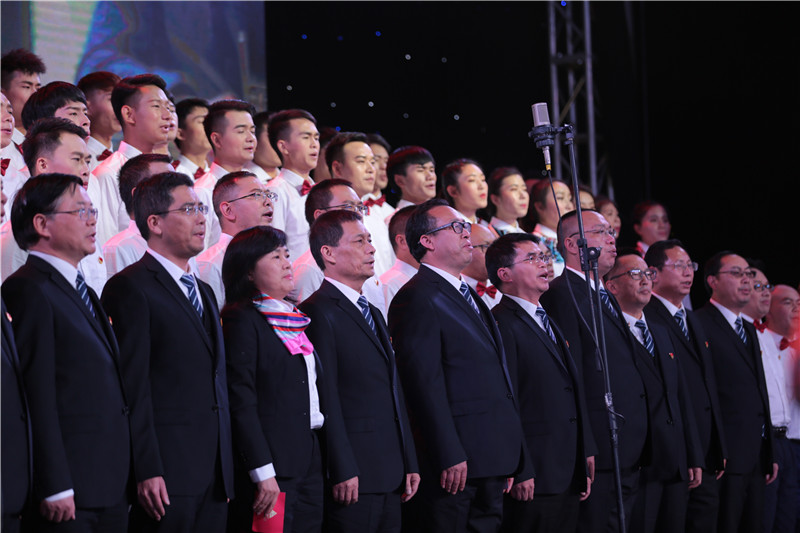 晚會(huì)在舞蹈《光榮與夢(mèng)想》中拉開了序幕,隨著音樂(lè)節(jié)奏的加快,青春洋溢的舞蹈、說(shuō)唱、民族舞表演、詩(shī)歌朗誦、才藝展示等節(jié)目,把整個(gè)晚會(huì)的氣氛推向一個(gè)又一個(gè)高潮。臺(tái)下觀眾掌聲如潮,匯成一片青春和歡樂(lè)的海洋。晚會(huì)在百人大合唱《我們是鋅銦人》《云錫之魂》《祖國(guó)不會(huì)忘記》中圓滿落下帷幕。晚會(huì)最后,牛輝帶領(lǐng)兩家公司黨政領(lǐng)導(dǎo)班子、部分管理干部及全體演職人員舉行了“為2019生存發(fā)展而戰(zhàn)”的宣誓儀式。