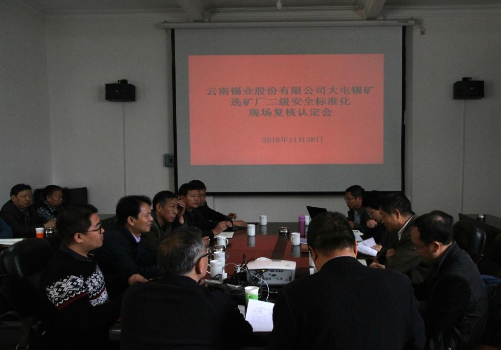 11月28日,云南省應(yīng)急管理廳副處長李曉晨、丁武成,會(huì)同紅河州、個(gè)舊市安全生產(chǎn)監(jiān)督管理局等領(lǐng)導(dǎo)專家對(duì)大屯錫礦選廠片二級(jí)安全標(biāo)準(zhǔn)化運(yùn)行情況進(jìn)行現(xiàn)場(chǎng)復(fù)核認(rèn)定。