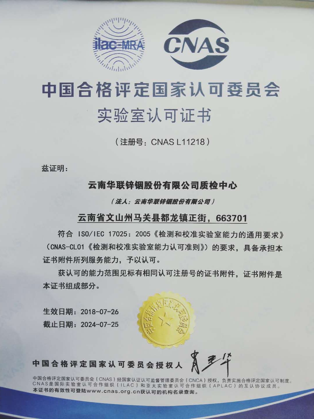 8月3日,華聯(lián)鋅銦公司通過CNAS實(shí)驗(yàn)室現(xiàn)場評審和后續(xù)審查,成功獲得實(shí)驗(yàn)室國家認(rèn)可證書。