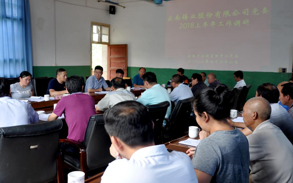 7月26日,錫業(yè)股份黨委書記、董事長湯發(fā),黨委委員、紀(jì)委書記羊慎率第一調(diào)研組到云錫產(chǎn)業(yè)園進(jìn)行上半年黨建工作調(diào)研,要求云錫產(chǎn)業(yè)園黨委以“四個(gè)聚焦”推進(jìn)工作。