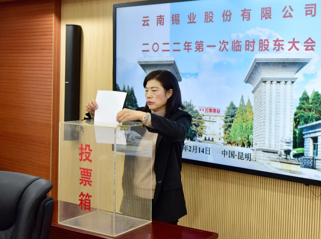 2月14日,錫業(yè)股份2022年第一次臨時股東大會在昆明辦公樓8樓會議室召開。錫業(yè)股份副董事長、總經理楊奕敏女士主持會議。