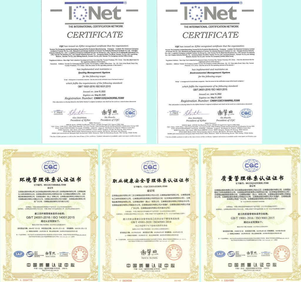 5月,CQC中國質(zhì)量認(rèn)證中心云南評審中心(中國檢驗認(rèn)證集團(tuán)云南有限公司)對錫業(yè)股份及相關(guān)單位進(jìn)行了現(xiàn)場審核,錫業(yè)股份按時組織完成不符合項和改進(jìn)項的整改,并配合提供認(rèn)證上報資料,經(jīng)CQC中國質(zhì)量認(rèn)證中心總部審核,確認(rèn)上報資料符合要求,滿足發(fā)證條件,同意錫業(yè)股份保持原有認(rèn)證產(chǎn)品及單位的基礎(chǔ)上,進(jìn)一步將認(rèn)證產(chǎn)品增加到32類,大屯、卡房、老廠、昆山系材等選礦、錫材深加工單位納入認(rèn)證范圍,認(rèn)證單位增加到11個。