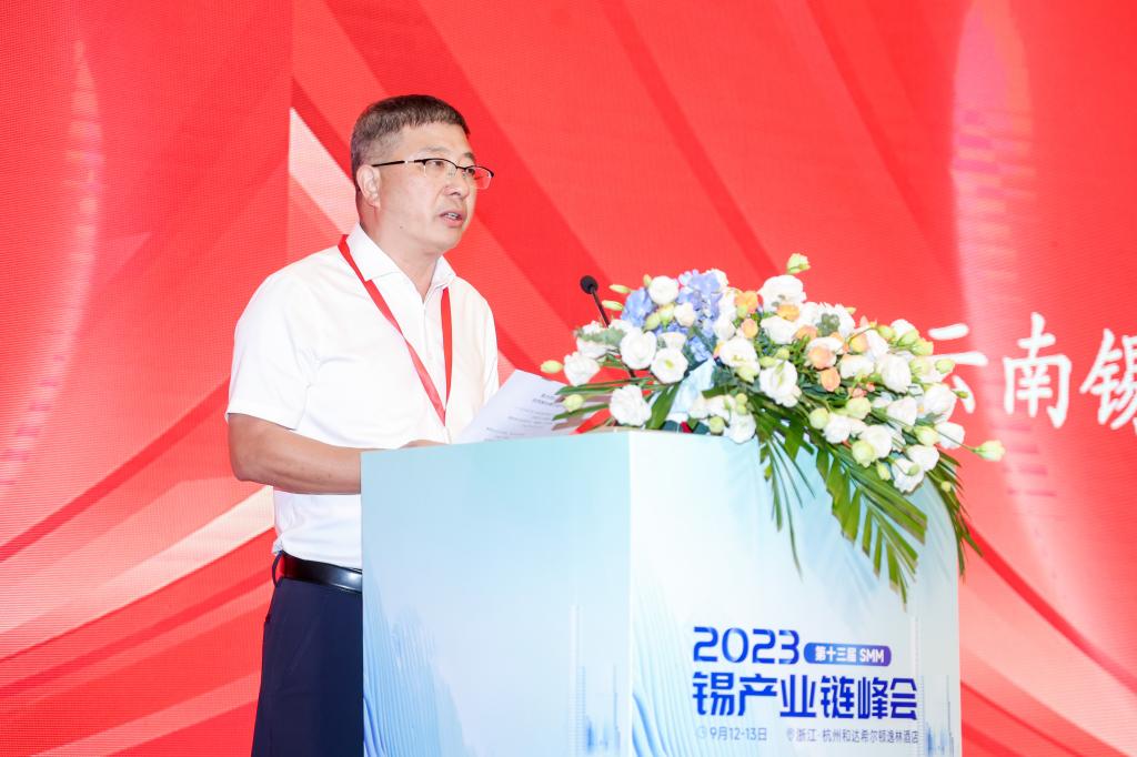 在圓桌價格論壇環(huán)節(jié),錫業(yè)股份副總經(jīng)理陳雄軍就國內(nèi)錫礦供應(yīng)現(xiàn)狀、下游需求變化以及產(chǎn)業(yè)未來發(fā)展動向等問題做討論和發(fā)言。