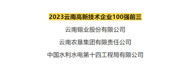 今年是云南省企業(yè)聯(lián)合會(huì)、云南省企業(yè)家協(xié)會(huì)第16年發(fā)布“云南企業(yè)100強(qiáng)名單”,云南省企業(yè)聯(lián)合會(huì)參照國(guó)際通用做法,按照企業(yè)自愿參加、自愿申報(bào)的原則,以2022年企業(yè)營(yíng)業(yè)收入為入圍標(biāo)準(zhǔn),推出2023云南企業(yè)100強(qiáng)、云南制造業(yè)企業(yè)100強(qiáng)、云南服務(wù)業(yè)企業(yè)50強(qiáng)、云南民營(yíng)企業(yè)100強(qiáng)和云南高新技術(shù)企業(yè)100強(qiáng)、云南企業(yè)年度營(yíng)業(yè)收入突破億元企業(yè)名單。
