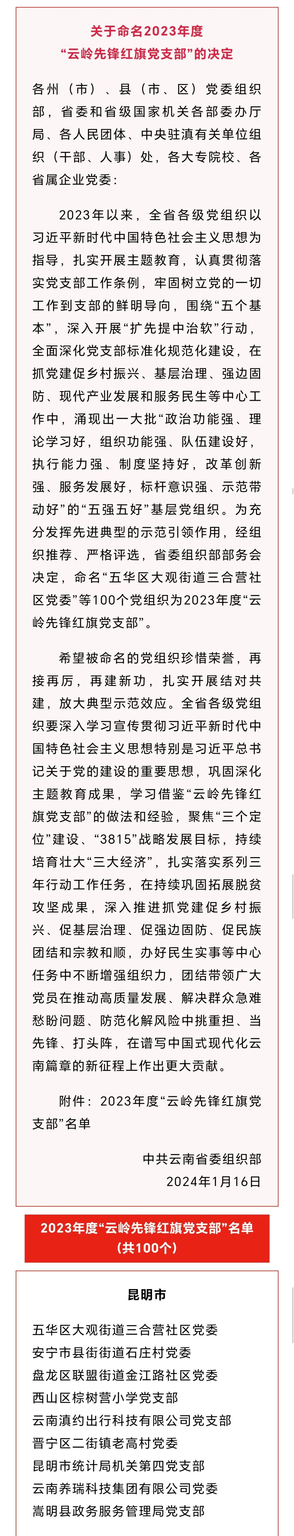 近日,中共云南省委組織部發(fā)布了《關(guān)于命名2023年度“云嶺先鋒紅旗黨支部”的決定》,華聯(lián)鋅銦公司新田選礦車間黨支部榜上有名。
