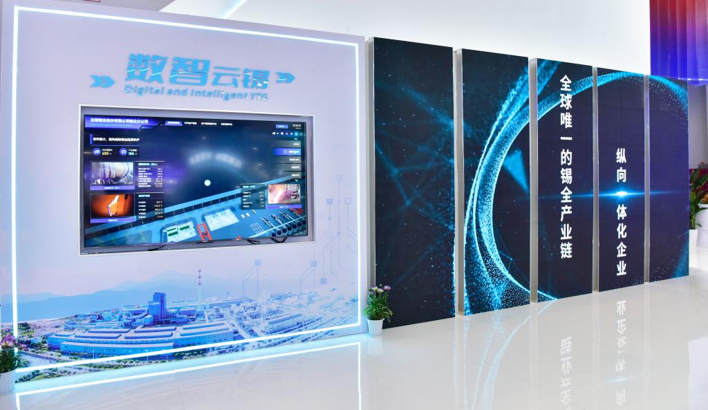 “錫銦新質(zhì)生產(chǎn)力”板塊以五折屏形式,呈現(xiàn)云錫作為全球唯一的錫全產(chǎn)業(yè)鏈縱向一體化企業(yè),以科技創(chuàng)新引領(lǐng)高質(zhì)量發(fā)展的生動實踐;通過錫冶煉數(shù)字孿生工廠線上演示,展現(xiàn)云錫以數(shù)智化賦能,推進5G+應(yīng)用與產(chǎn)業(yè)深度融合,加快打造全球錫行業(yè)唯一“燈塔工廠”的新探索。