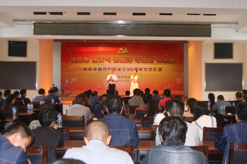 6月28日下午,卡房分公司黨委圍繞“貫徹六中全會精神,推進(jìn)全面從嚴(yán)治黨” 黨風(fēng)廉政教育月活動主題,舉辦了一臺以小品、情景劇、詩朗誦等貫穿廉潔從業(yè)主線的慶祝中國共產(chǎn)黨成立96周年文藝匯演