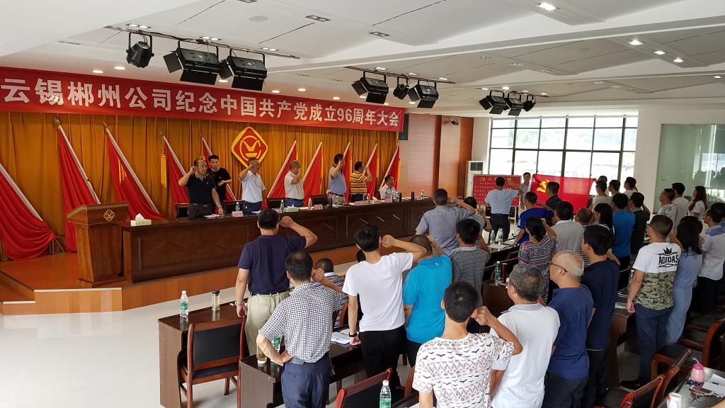 在中國共產(chǎn)黨建黨96周年到來之際,錫業(yè)股份所屬單位黨委組織廣大黨員開展形式多樣的紀(jì)念活動(dòng),牢記使命,不忘初心,砥礪前行,以良好的精神風(fēng)貌迎接黨的十九大勝利召開。