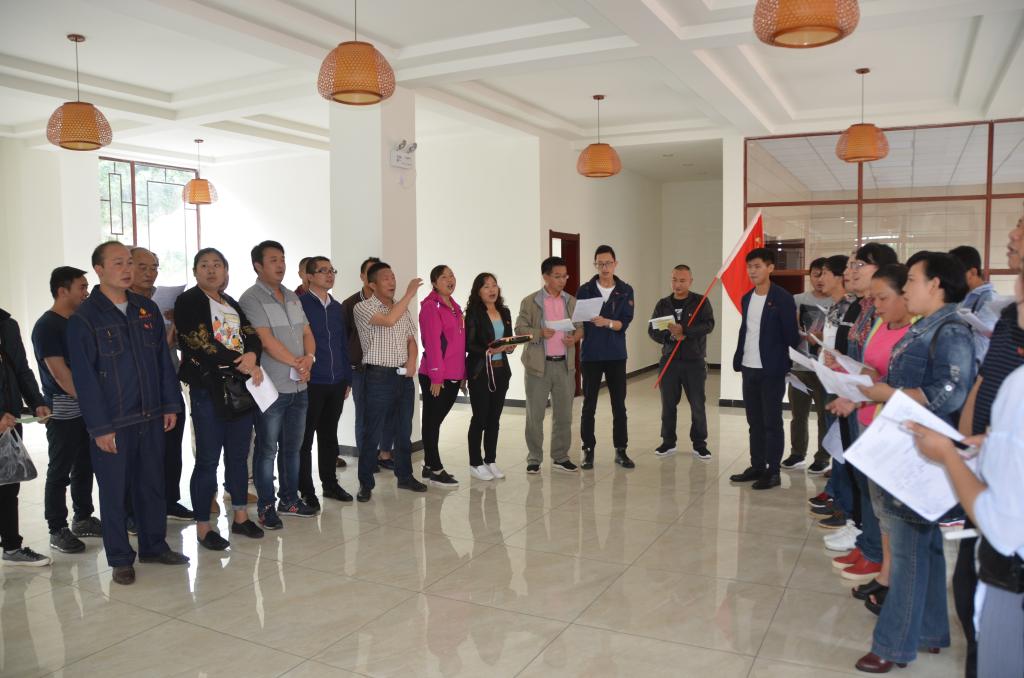 在黨課開始前,錫材公司6名新黨員面對(duì)黨旗莊嚴(yán)宣誓,與會(huì)的40多名老黨員一起重溫入黨誓詞,進(jìn)一步增強(qiáng)黨員意識(shí),牢記黨員使命。