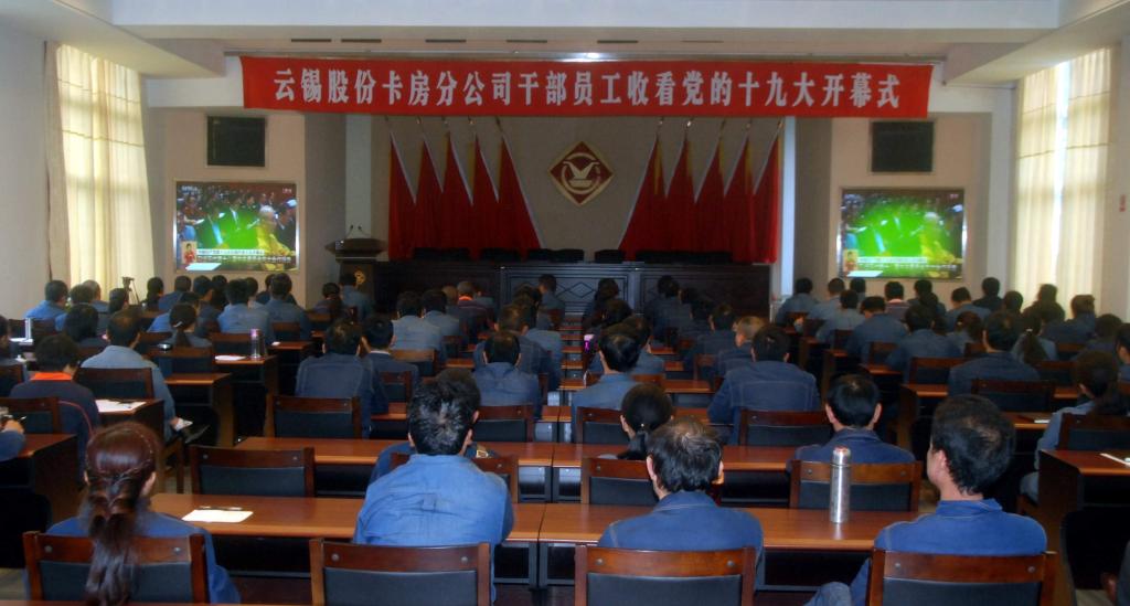 云錫控股公司和錫業(yè)股份機關黨員干部職工260余人在云錫賓館報告廳進行了集中收看。兩級公司領導班子成員與干部員工一起收看了黨的十九大開幕會盛況。