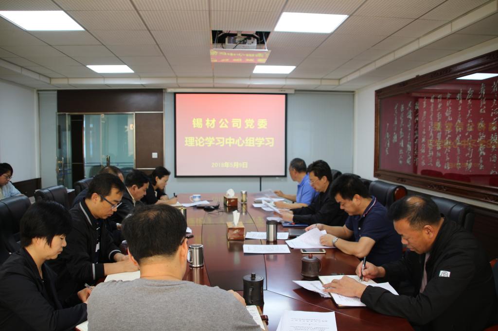 5月9日,錫材公司黨委理論學(xué)習(xí)中心組舉行第二次集中學(xué)習(xí)研討,深入學(xué)習(xí)貫徹習(xí)近平新時(shí)代中國(guó)特色社會(huì)主義思想,進(jìn)一步統(tǒng)一思想、凝聚共識(shí),用理論武裝頭腦、指導(dǎo)實(shí)踐,確保全年生產(chǎn)經(jīng)營(yíng)和深改攻堅(jiān)目標(biāo)任務(wù)完成。