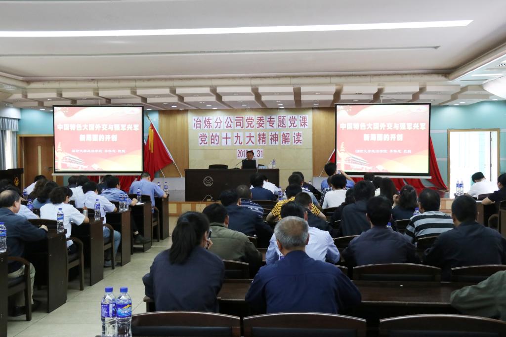 7月31日,冶煉分公司黨委舉辦專題黨課,邀請國防大學(xué)政治學(xué)院李保忠教授講授習(xí)近平新時代中國特色社會主義思想和黨的十九大精神。