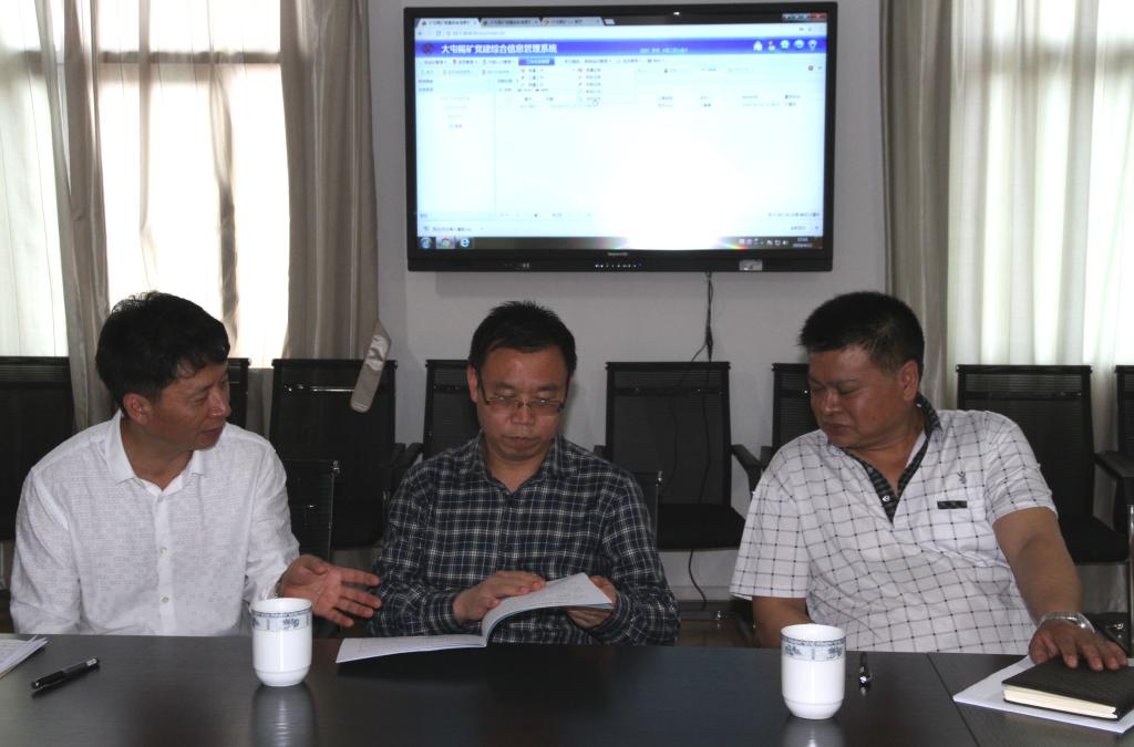 “目前有多少黨員?‘三會一課’制度是否按要求執(zhí)行?黨員對一系列黨建工作是什么態(tài)度?”姚家立在檢查三坑黨總支黨員活動室建設工作時,詢問了黨建工作相關情況。三坑黨總支書記逐一回答了姚副書記的提問,并就所開展的黨建工作情況作了匯報,其中,組織黨員觀看央視專題片《榜樣》,開展“看榜樣、學榜樣、爭做榜樣”活動;設立坑下黨員活動陣地,結合安全工作推行現(xiàn)場標準化定置管理等特色實踐活動。三坑坑長對坑口人力資源配置、今年以來的生產組織情況作了匯報。組織人力資源部門介紹并演示了正在測試的大屯錫礦黨建綜合信息管理系統(tǒng),該系統(tǒng)分為組織管理、黨員管理、干部人才管理、工作任務管理和學習交流五大模塊,具備權限分級、保密性強、覆蓋面廣和兼有互動等特點,通過系統(tǒng)建設與管理,可實現(xiàn)基層黨建“標準化建設、程序化控制、痕跡化管理、常態(tài)化考核、持續(xù)化改進,特色化發(fā)展”。