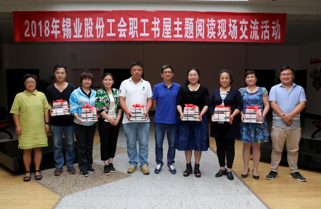 為推動(dòng)職工書(shū)屋建設(shè),突出職工書(shū)屋教育引導(dǎo)功能,7月19日,錫業(yè)股份工會(huì)在錫博物館四樓大廳職工書(shū)屋舉辦“閱讀經(jīng)典好書(shū) 爭(zhēng)當(dāng)工匠人才”職工書(shū)屋主題閱讀現(xiàn)場(chǎng)交流活動(dòng)。錫業(yè)股份黨委委員、工會(huì)主席李林為獲得“讀一本好書(shū)”征文活動(dòng)的獲獎(jiǎng)作者頒獎(jiǎng),并向錫業(yè)股份所屬單位工會(huì)贈(zèng)送書(shū)籍。