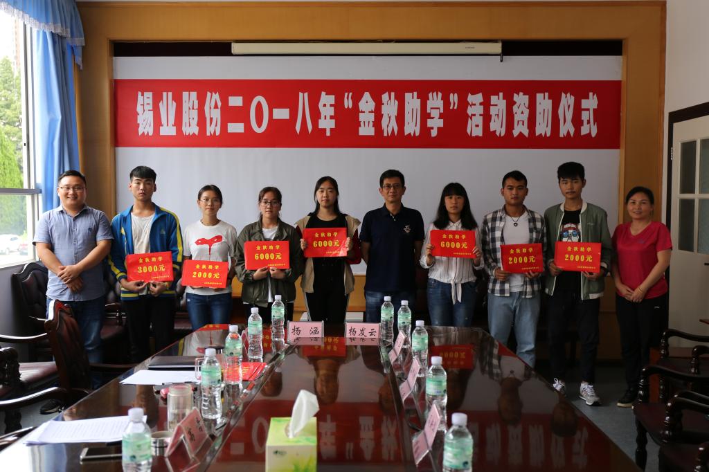8月21日,錫業(yè)股份在個舊舉行2018年金秋助學(xué)資助儀式。錫業(yè)股份黨委委員、工會主席李林向取得優(yōu)異成績受到資助的大學(xué)生們表示親切的問候和祝賀,希望他們把各級工會組織的關(guān)愛轉(zhuǎn)化成精神動力,克服學(xué)習(xí)和生活中的各種困難,在嶄新的人生舞臺上,唱響最華美的樂章。