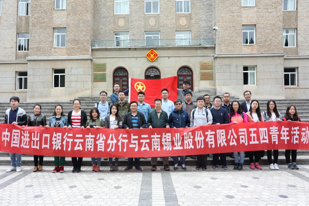 5月5日,中國(guó)進(jìn)出口銀行云南省分行黨委委員、行長(zhǎng)助理黃旭華率團(tuán)員青年,到錫業(yè)股份開展“五.四”青年節(jié)“不忘初心跟黨走,牢記使命建新功”主題活動(dòng)。錫業(yè)股份黨委委員、工會(huì)主席李林、團(tuán)委書記王戰(zhàn)蒙及部分所屬單位團(tuán)委負(fù)責(zé)人熱情接待了來(lái)賓。