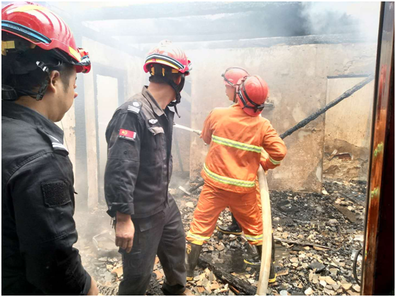 4月18日中午12時(shí)30分許,華聯(lián)鋅銦公司保衛(wèi)部接到都龍鎮(zhèn)政府打來(lái)的滅火救援電話:都龍鎮(zhèn)街頭新加油站對(duì)面一處民宅發(fā)生大火。保衛(wèi)部主任吳賢明立即指揮調(diào)度公司10名消防隊(duì)員及一輛消防車迅速趕到火災(zāi)現(xiàn)場(chǎng)投入撲火救援工作中。